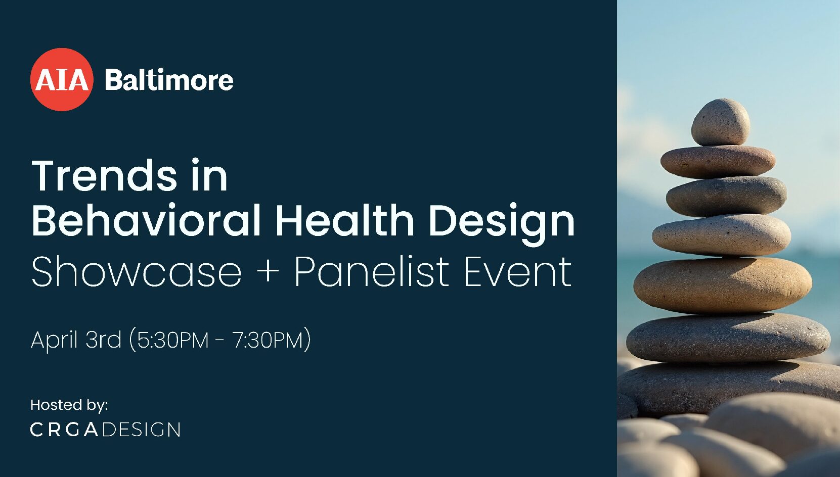 AIA Baltimore’s Health and Wellness Design Committee presents: Trends in Behavioral Health Design, a Showcase + Panel on Thursday, April 3rd from 5:30-7:30pm The event will be held at CRGA Design’s Federal Hill Office.